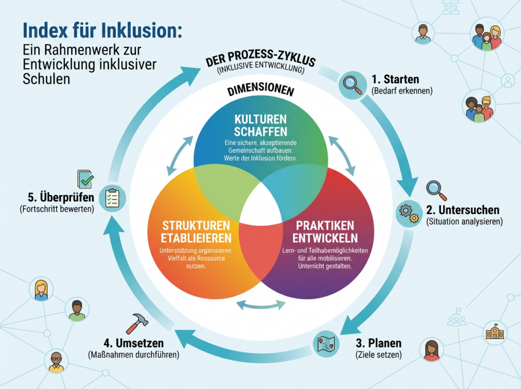 Der „Index für Inklusion“ ist eine Fragensammlung und stellt eine praxisnahe Arbeitshilfe für die Selbstevaluation und die Initiierung von inklusiven Prozessen in Bildungseinrichtungen und anderen Organisationen dar.